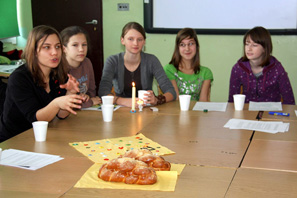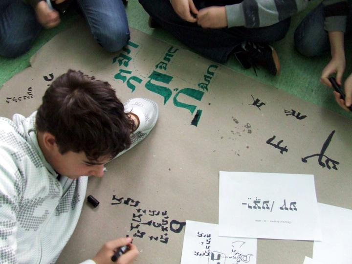 That day did not exhaust the ideas for an imaginative, enthusiastic coming together. What is the most effective way of conveying knowledge to teenagers? Everyone knows that it’s by getting them to do something. Workshops were organized in a Grodzisk intermediate school with the participation of educators from the Museum of the History of the Polish Jews. Preparing a Sabbath supper together, the students learned about customs connected with that day, and by reading source texts they created a map of prewar Grodzisk with the synagogue, mikveh, and Jewish-run shops. They used Hebrew letters to make color illustrations and the signs of the Hebrew alphabet grew into exotic animals from a fairy tale. The works of Isaac Bashevis Singer inspired other images.
