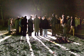 Cleaning up and fencing the cemetery was the first visible sign of changes in the way Koszalin residents related to their own past. The grand opening of the restored cemetery took place in May 2005, and in the fall of that year Father Romanik and Pacholski led the first Memorial March past its gates. Each year since then the March has drawn people who are not indifferent to the fate of the prewar residents of their city who fell victim to Kristallnacht, the pogrom against Jews on the night of 9/10 November, 1938, all across the Third German Reich—within the borders of which Koszalin lay before the war. On a route running past the two cemeteries and the site of the old synagogue, those assembled pray, light candles, and keep silent. Their presence has more than a religious dimension. It is an expression of the fundamental rejection of indifference and ignorance of one’s own roots. Since 2010 the march has been ecumenical. The Rev. Sebastian Niedźwiedziński of the Evangelical Methodist church and chairman of the Koszalin branch of the Polish Ecumenical Council joined the organizers, stressing the way such encounters bring people together regardless of denomination. Local media carry stories about the March, but most of those in attendance get the word through text messages and emails. Hundreds of people turn out each year no matter what the weather.