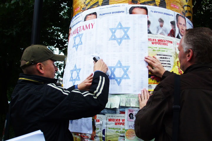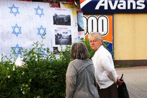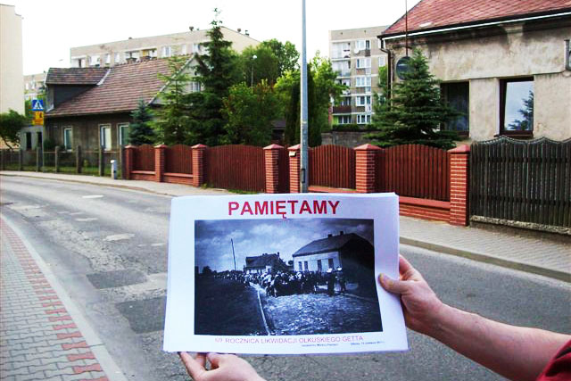 Since then, the memorial march has been held on June 13 each year in a somewhat larger circle—several people, or even a dozen or more, join in. It is difficult even to say that anyone organizes it. The interested parties themselves ask about the starting time, pass the information around by word of mouth, and set off together. Along the route of the march the initiators hang copies of photographs documenting the events from years ago that the march commemorates and a series of posters with eye-catching blue Stars of David and the words “We remember” on the first of them. About 1,500 names appear on these posters in small print, with first names, ages, and addresses for most of them. These are the names of Jewish victims of the German occupation of Olkusz during World War II that have been established to date by Krzysztof Kocjan, who is researching the history of the Holocaust in the Olkusz region. Passersby sometimes pause before the posters, look around the surroundings (the copies of the photographs are located near the locations where the pictures were taken), or hunt for an address on the list. The victims stop being an anonymous crowd; they regain a name, an address, and a face.